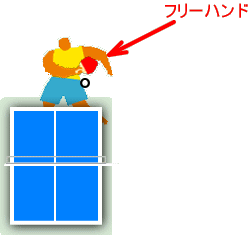 フリーハンドとは、ラケットを持っていない方の手ことを言います。